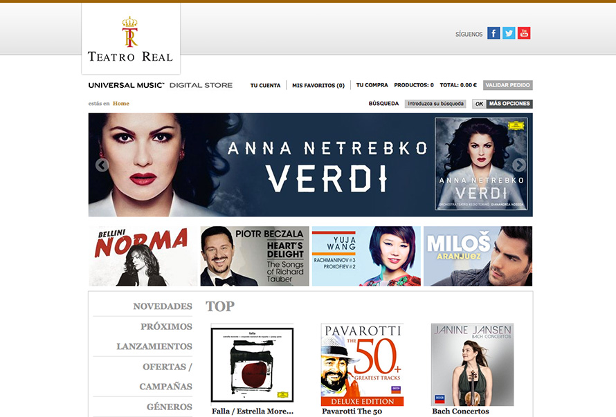 El Teatro Real ha presentado su tienda como un lugar en el que poder acceder a toda la música clásica desde cualquier dispositivo, cosa que tiramos por tierra en este preciso momento, ya que no cuenta con un diseño responsive ni con distintas versiones para tabletas o dispositivos móviles. Lo que si han destacado es el sistema de compra: una vez que haces tu pedido con PayPal o tarjeta de crédito, recibes en tu correo electrónico un enlace a la descarga del archivo, el cual permanecerá activo hasta 48 horas después de haber realizado el pedido.